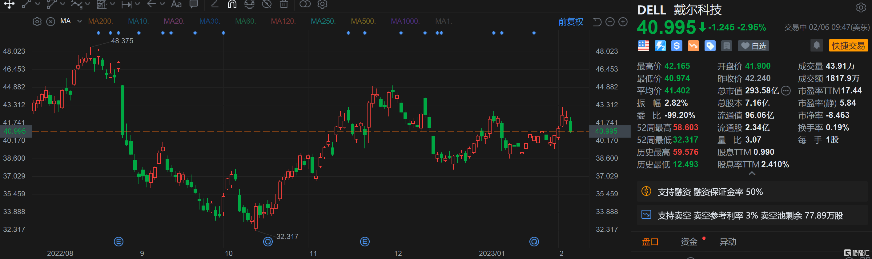 格隆汇2月6日丨戴尔(DELL.US)跌近3%,报40.995美元。受PC需求萎缩重创影响,戴尔将裁员约6650人,此次裁员约占其全球员工总数的5%。