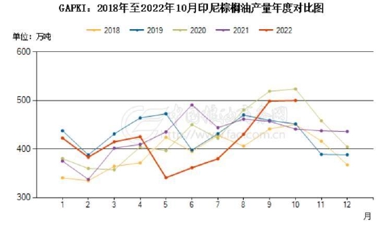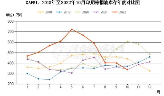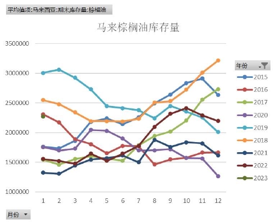 印尼方面来看,印尼棕榈油协会(GAPKI)表示,印尼2022年毛棕榈油产量小幅下降至4670万吨,棕榈油产品出口量为3080万吨,较2021年下降8.5%,这是因为印尼在4月末至5月曾短暂禁止出口棕榈油,同时印尼国内棕榈油消费量增加,且国内产量也小幅下降。印尼2022年棕榈仁油产量为450万吨。截至2022年年底,棕榈油库存为365万吨。从数据来看,虽然数据稍有延迟,不过有一定的指引的作用。产量方面,可以明显看出,受印尼一度禁止出口的影响,棕榈油收割也受到影响,月度产量一度下滑至400万吨以下,而一般同期的产量维持在400-500万吨之间。不过后期随着出口量的恢复,产量也有所恢复。另外,随着印尼鼓励出口政策的实施,印尼的库存快速回归至正常水平,目前基本恢复至限制出口之前的水平,对市场的供应压力预计有限。